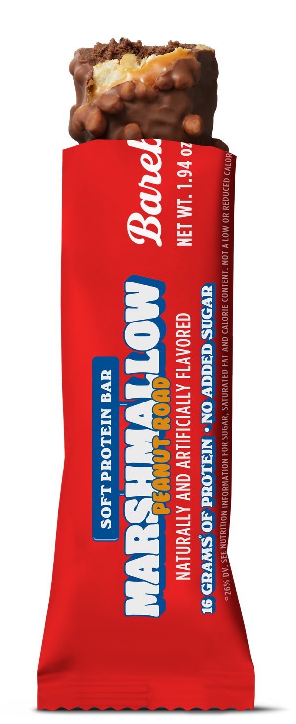 Inspired by a long standing, beloved flavor, but with a Barebells twist – introducing Marshmallow Peanut Road. After all, it is Aquarius season, so this launch had to feature a bar truly unique. This soft bar is unlike the rest – it features two layers of soft vanilla and chocolate marshmallow, crunchy peanuts, caramel, all encased in coating of milk chocolate, and sprinkled with our signature crispy bits! Our soft protein bars have 16 grams of protein and no added sugar*