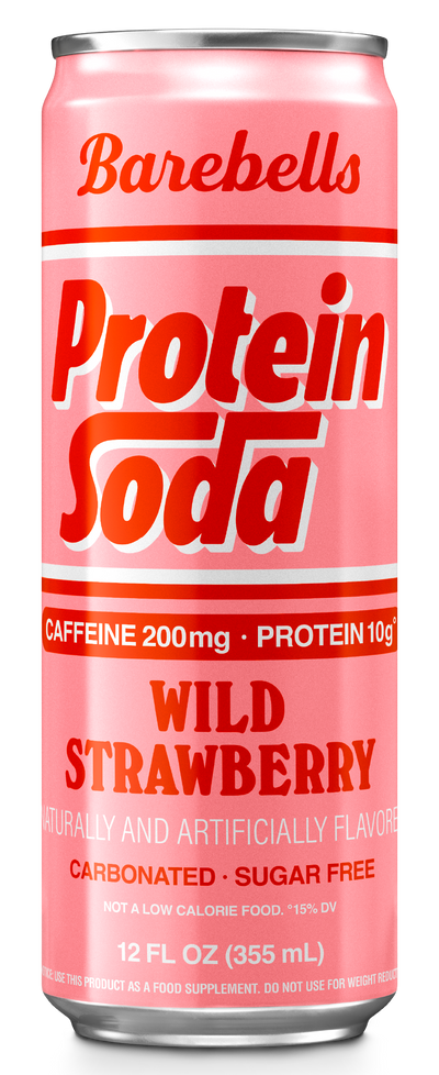Go bold with Barebells Protein Soda in Wild Strawberry. This sugar-free sparkling protein drink blends juicy, wild strawberry flavor with 10g of clear whey protein isolate, 200mg of caffeine, and B vitamins.